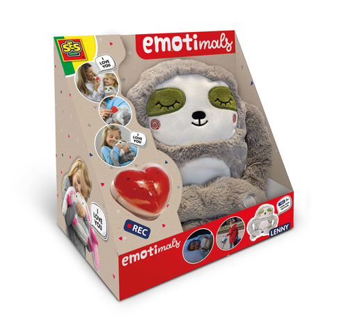 Emotimals van SES zijn meer dan zachte knuffels met lange armen en een staart. Gaat je zoon of dochter voor het eerst naar de crèche, naar school of uit logeren? Toch een beetje spannend? Geen paniek! Emotimals hebben een groot hart, met ruimte voor drie lieve berichtjes die je zelf kan opnemen. Met een Emotimal is mama, papa, oma of opa altijd dichtbij! Alle Emotimals zijn gemaakt van stof met verschillende texturen, zodat ze heerlijk knuffelen. Door te schudden wordt één van berichten afgespeeld.